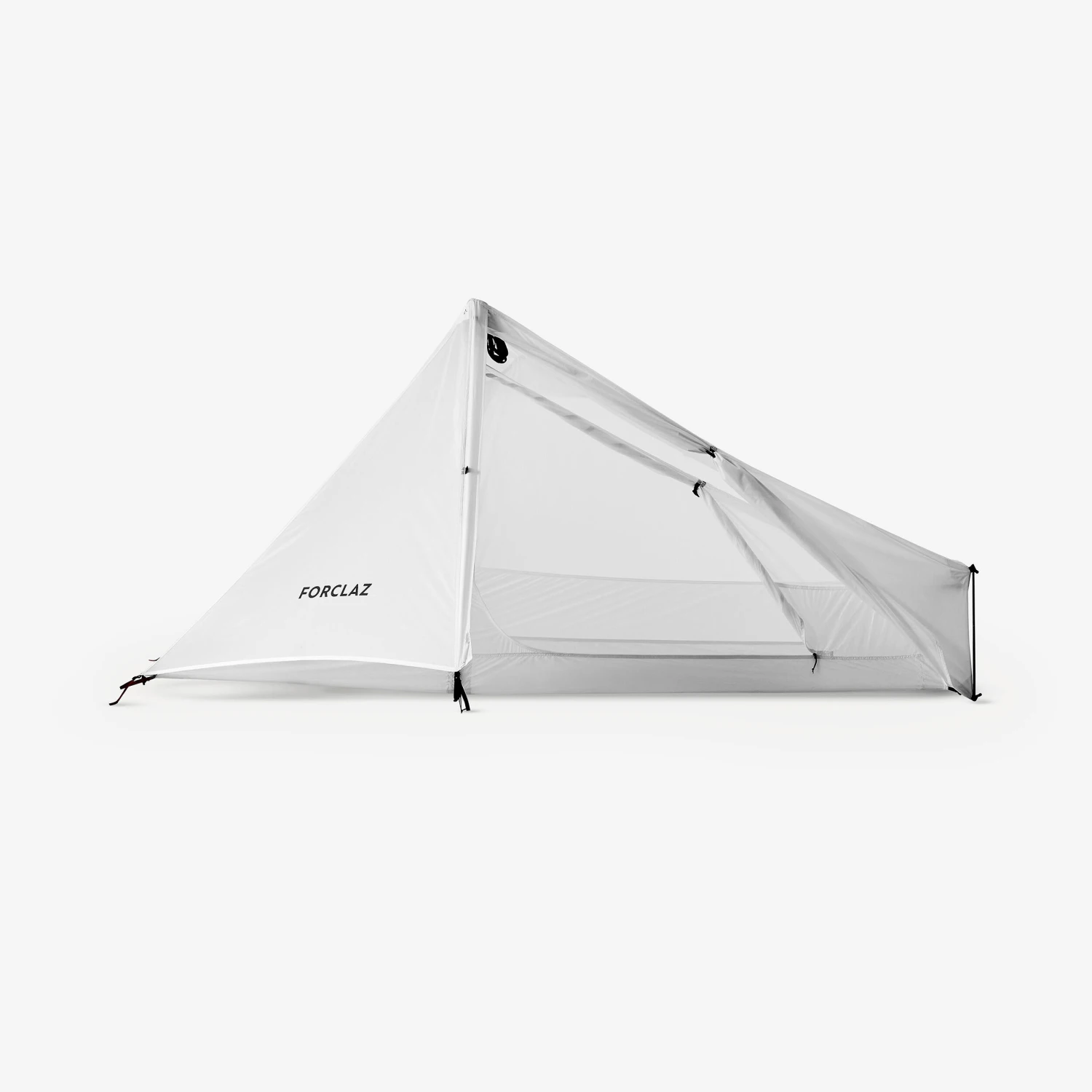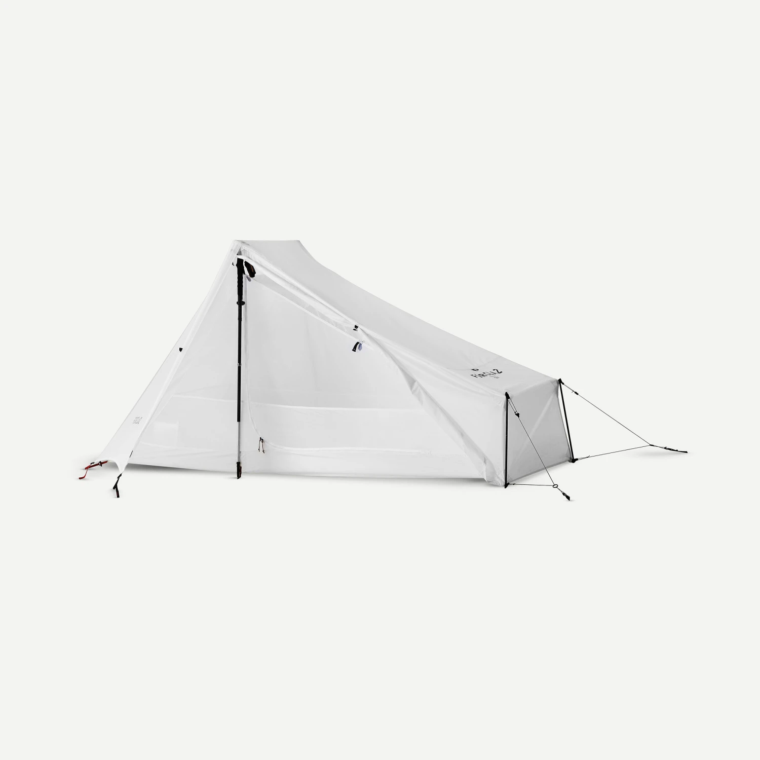 Our team has designed this 1 person tarp tent without poles for experienced trekkers looking for an ultra light mountain bivouacking solution.This hybrid tent and tarp model can be used with your 2 hiking poles (not provided) as the supporting structure. It has a side entrance and a porch. All for 920 g!