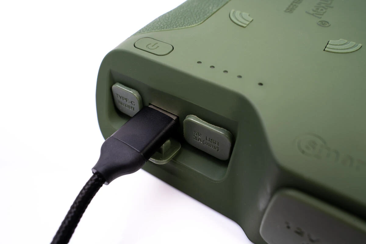 Banish the cables with Qi compatible wireless technology: simply set down your Qi enabled device on the Vault C-Smart Wireless pad, press the power button and watch the magic happen – up to 10W of wireless power delivered straight to your device. Combine this with ultra-intelligent superfast USB-C power delivery, dual 3A USB-A ports and a 12V DC output to provide a truly remarkable piece of technology. The huge 42150mAh capacity is enough to keep most individuals powered for a full week away from a single 3-hours charge using the included 60W USB-C power delivery mains adaptor.